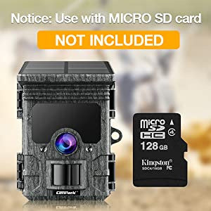The special thing about the T150 is that you can charge the trail camera when it is out of power. In addition, the trail camera has a solar panel, which allows it to be used without batteries. (Note: The solar panel is fixed to the top of the camera is not removable and cannot be used in other cameras.)