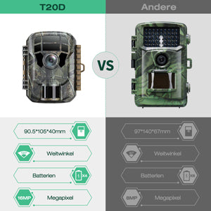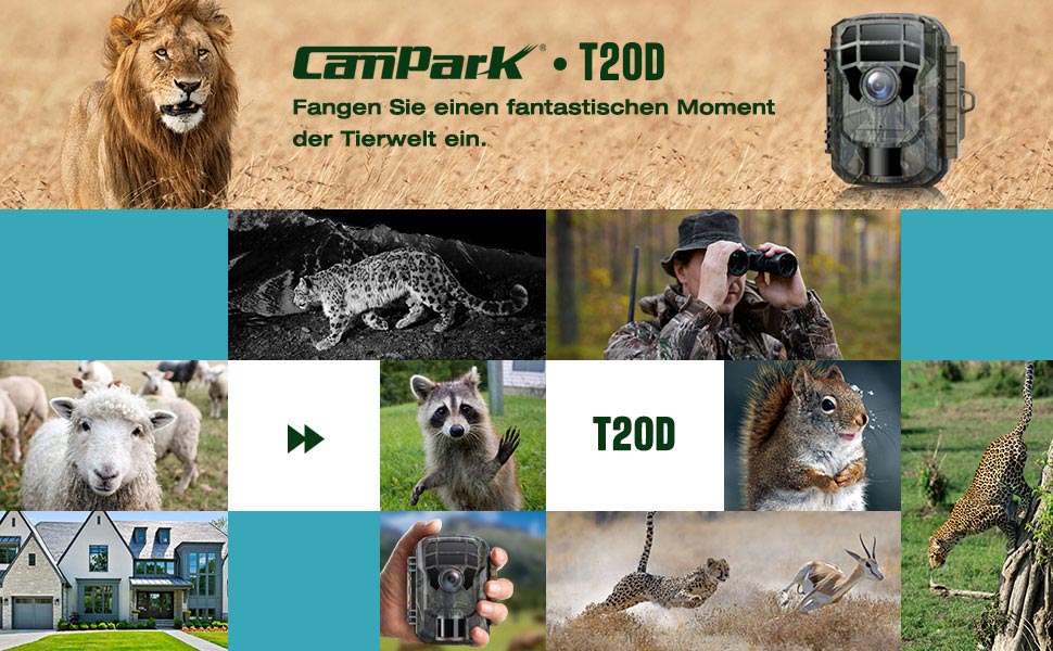 Die kleine Kamera hat eine große Welt. Es ist klein, aber sehr fein, mit Campark 1080P-Video und 20 MP-Bildern, sodass Sie die wunderbare Welt der Tiere durch kristallklare Bilder und Videos genießen können.