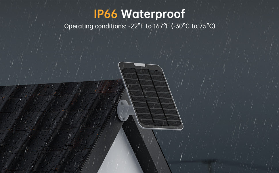 【IP66 wasserdicht】: Dieses Solarpanel für Heimkameras hält Schnee, Stürmen, Regen und anderen rauen Wetterbedingungen stand. Witterungsbeständige Materialien machen es perfekt für den Einsatz von Außenkameras. Bedingungen: -30 °C bis 75 °C (-22 °F bis 167 °F). Hochwertige Materialien sorgen dafür, dass die 4,1 W 5 V Solarmodule eine längere Lebensdauer haben und auch bei schlechtem Wetter nicht beschädigt werden.