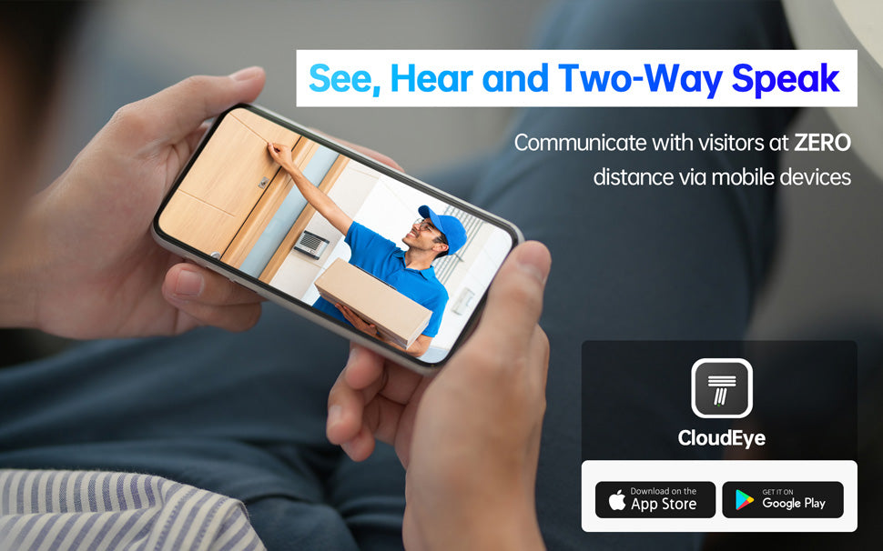 Zwei-Wege-Gespräch: Klicken Sie einfach auf die Talkback-Schaltfläche, um mit Ihrer Familie, Ihren Haustieren oder Kurieren vor der Kamera zu kommunizieren und ungebetene Gäste mündlich zu warnen.