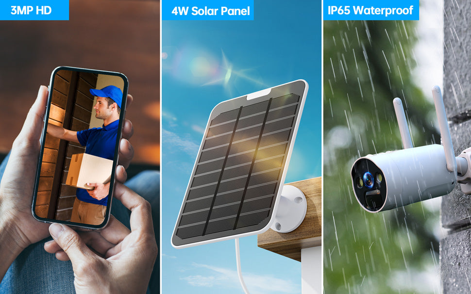 100 % kabellose, batteriebetriebene Sicherheitskamera und ununterbrochene Solarenergie für 365 Tage Lebensdauer