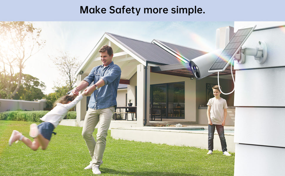 The camera has a built-in 8000 high-capacity rechargeable battery and is equipped with a 3W high-efficiency solar panel. Simply charge the camera once before use, then install the solar camera in a sunny location to ensure the solar panel receives maximum sunlight and provides uninterrupted power to the camera.