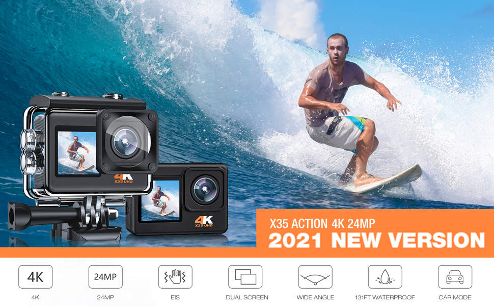 La caméra d'action Campark X35 dispose d'un enregistrement vidéo ultra HD 4K et d'une résolution photo de 24MP. Vous pouvez capturer de superbes vidéos 4K 30FPS/2.7K 30FPS/1080P 120FPS/ 720P 240FPS, etc. pour vous rappeler votre aventure avec une qualité vidéo nette et claire