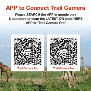 【WiFi Trail Camera-APP Control】 : Cette caméra de trail est une caméra de trail wifi, qui a elle-même un point d'accès afin que vous puissiez connecter la caméra sur l'application. Après vous être connecté à l'appareil photo, vous pouvez prévisualiser les photos et les vidéos dans l'application sur le smartphone. L'application est "Trail Camera Pro". Conseils : Le wifi a une limite de distance (généralement 10 m). Veuillez rechercher l'application dans l'App Store ou scanner le dernier code QR dans la deuxième image
