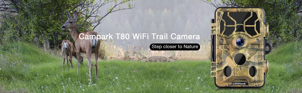 Caméra Campark T80 Trail intégrée WIFI et fonction de contrôle APP. Téléchargez l'application "Trail Camera Pro" sur votre téléphone portable, puis connectez-vous au WIFI. Vous pouvez ajuster les paramètres et vérifier la photo/vidéo directement sur le téléphone. Cette caméra de chasse n'est pas une webcam, la télécommande a des limites de portée