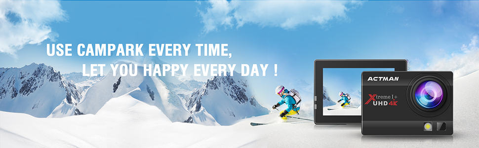 Campark ACT74A professional action camera records video at 4K/30fps, 2.7K, 1080P, 720P, and takes photos at 20MP/ 16MP/ 12MP/ 8MP, providing high quality pictures and videos for you.