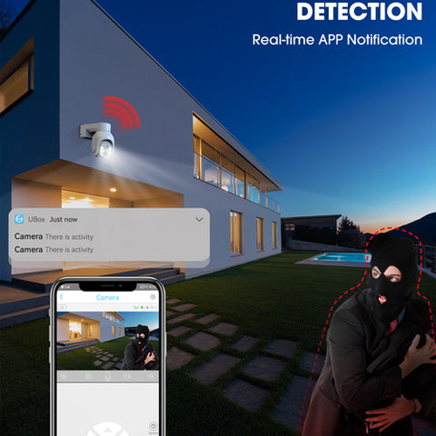 The CCTV security camera can provide 355° horizontal and 90° vertical rotating range, which greatly reduces the blind spots in the field of view and can protect your family more comprehensively. The monitoring angle can be controlled remotely by UBOX APP.
